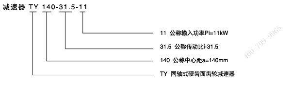 減速器的標記代號中包括減速器型號、公稱中心距、公稱傳動比和公稱輸入功率。