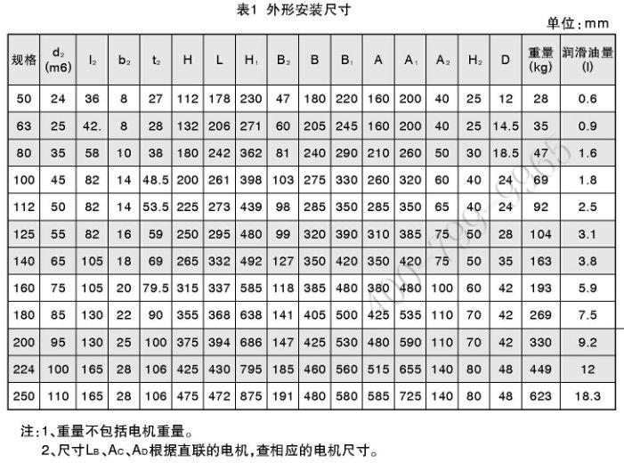 一般配用Y系列三相異步電機,輸入轉(zhuǎn)速1500r/min,電機安裝形式為B5或B35;
