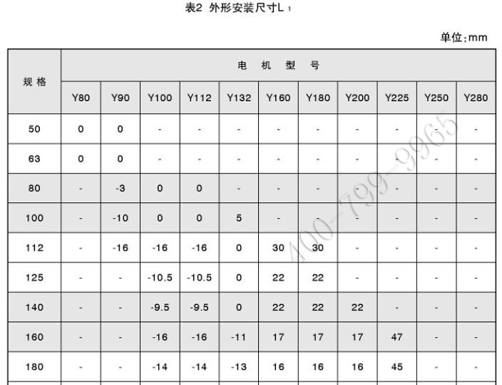 注:表中帶負號者,其數(shù)值為電機凹入減速器的長度值。