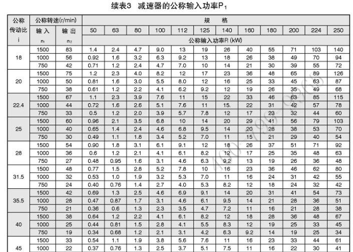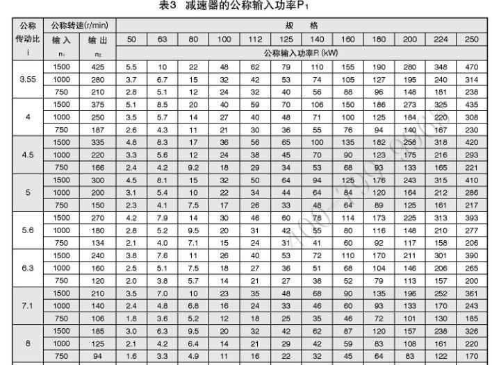 減速器按機械強度計算的公稱輸入功率P1.見表3