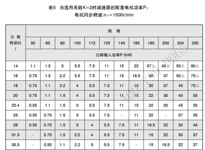 1、減速器的承載能力受機械功率和熱功率兩方面的限制,選用時必須同時通過兩個功率表。