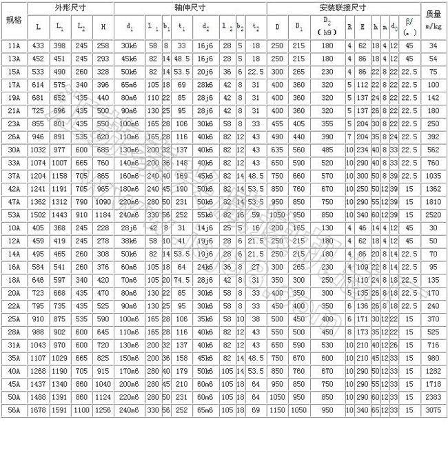 工作條件:輸入轉(zhuǎn)速28B型以下≤3000 r/min,40B型以下≤1800r/min,45B型以下≤1000r/min,Y型≤1500r/min;公稱(chēng)轉(zhuǎn)矩2.107~588kN·m;傳遞功率0.25~2000kW;工作環(huán)境溫度為-40~45℃,低于0℃時(shí),啟動(dòng)前潤(rùn)滑油應(yīng)預(yù)熱,高于45℃時(shí)應(yīng)采取降溫措施。