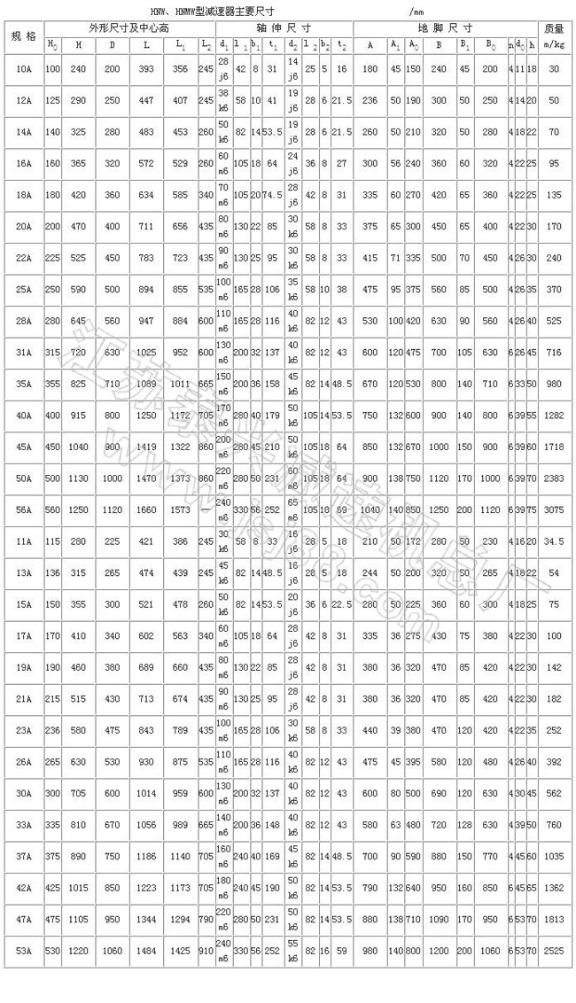 H型星輪減速器(JB/T 8712—1998)代替原混合少齒差星輪減速器(ZBJ 19006—1988)屬少齒差漸開線行星齒輪傳動,具有體積小,承載能力高,傳動比寬、密,效率高,壽命長,傳動平穩(wěn),允許高速輸入等特點。采用單元化結(jié)構,以行星齒輪、內(nèi)齒輪、滾動星輪、偏心套和行星架組合的主要單元,代號H;用擴大傳動比的附加單元代號N;用來改變輸入方向的附加單元代號Z。同一種機座號可采用4種承載能力單元結(jié)構,因而在產(chǎn)品型號后面附注A、B、C、D4個承載能力代號,即輕型、中型、重型、超重型。適用于冶金、礦山、電力 、起重、運輸、橡膠、水泥、造紙、制糖、鍋爐、建筑等領域,為通用型減速器。